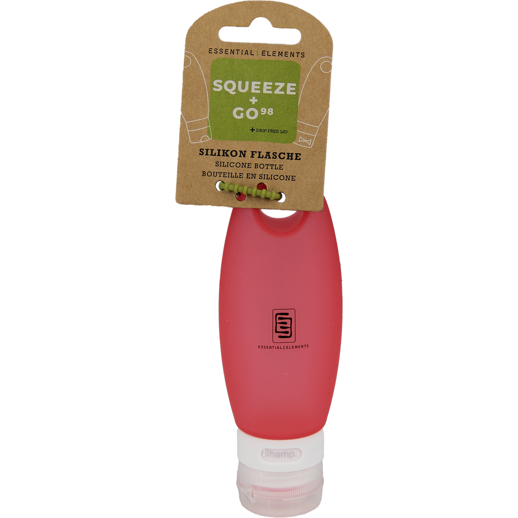 WIEDERBEFÜLLBARE SILIKONFLASCHE - Gut abgefüllt – die SQUEEZE+GO ist eine praktische, kleine, BPA-freie Silikonflasche mit Deckel. Sie eignet sich zum Einfüllen von Cremes, Shampoo, Sonnenmilch oder sogar von essbaren Substanzen wie Honig oder Öl zum Kochen. Der Ausgiesser mit Silikonlippe ist tropfsicher, einfach zu dosieren und fest verschliessbar. Dank der Aufhängöse an der Bodenseite kann die Flasche an Saughaken, wie dem HANG+GO, oder an jedem Nagel aufgehängt werden. Am leicht verstellbaren Klickring lässt sich der jeweilige Inhalt kennzeichnen. Die Fläschchen sind so dimensioniert, dass sie im Handgepäck beim Fliegen erlaubt sind.