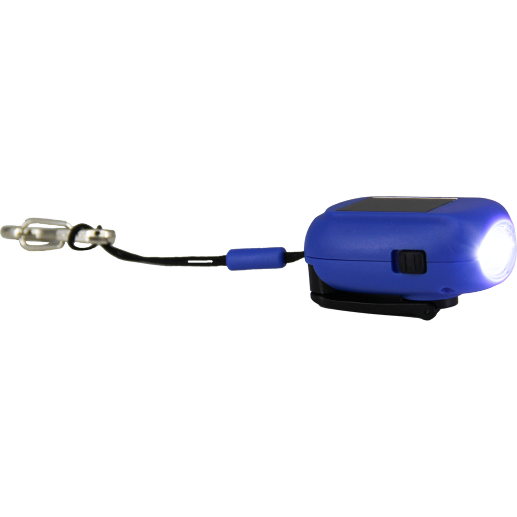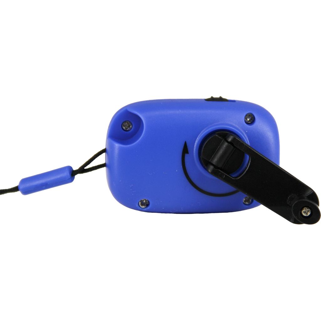 Akku, der entweder bequem durch Solar-Energie oder mittels einer kleinen Handkurbel durch Muskelkraft geladen