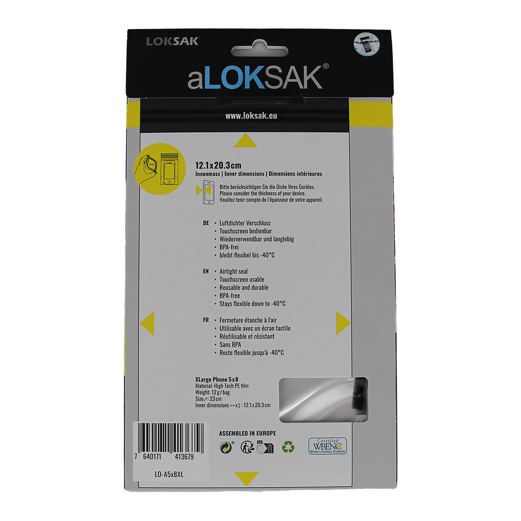Home > LOKSAK > aLOKSAK > aLOKSAK 5x8 XLarge Phone - 2 Stück (12,1 x 20,3 cm) Smartphone mit Hülle