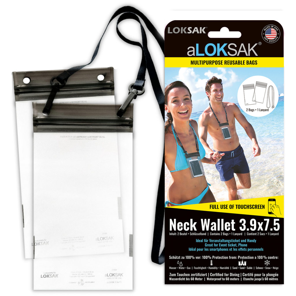 aLOKSAK Neck Wallet 3.9x7.5 - 2 Stück & 1 Lanyard (9,9 x 19 cm) Veranstaltungsticket, grosses Handy